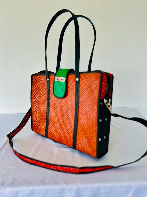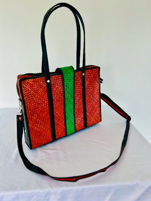 Woven purses and other stylish accessories, hand-made from natural fibers