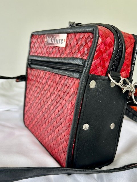 - • Stylish Options: Available in plain black or vibrant colors/designs, adding a touch of personality to this functional woven sling bag.